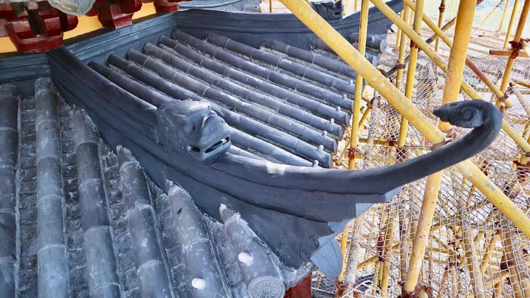? ? ? ??本次工程遵循不改變原狀的文物修復原則,屋面的瓦、脊獸、如意、塔院地磚等構件,盡量保留原有構件、修復按照傳統工藝。
